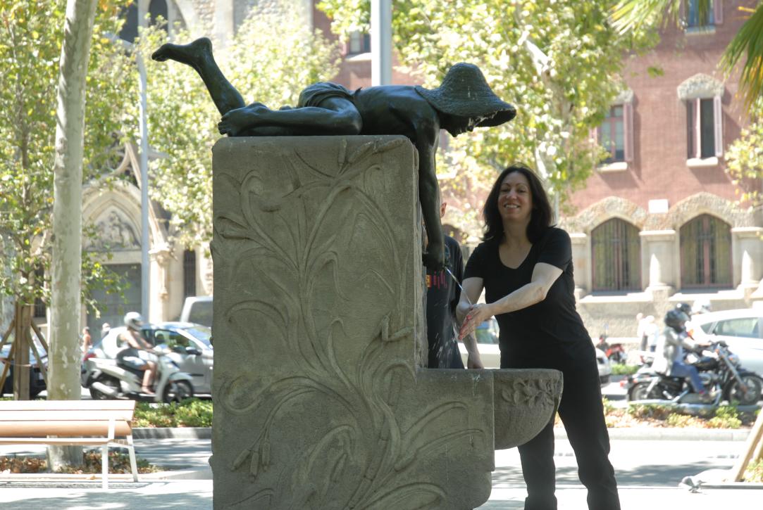 (37. /ex lightbox) Esthrich making friends with the fountain