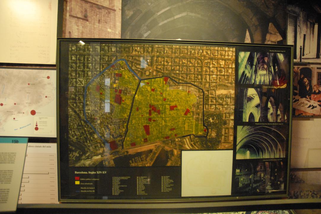 (60. /ex lightbox) Extensión de los murallas del Barrio Gótico construidos bajo Jaume I hasta incluyendo El Raval bajo Pere III