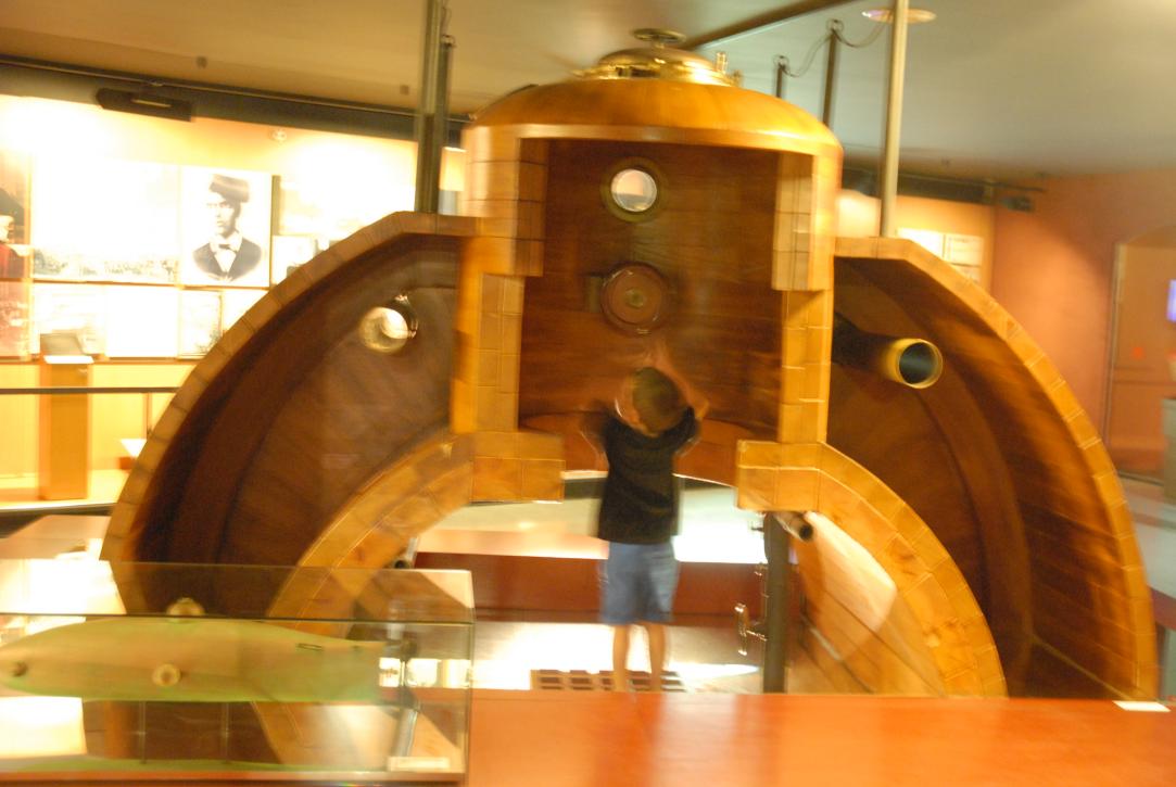 (69. /ex lightbox) Secció vertical de la cambra de nevegasió del submari "Ictineo II", dissenyat el 1882 per l'inventor i politic Narcis Monturiol (1819 - 1885) i avarat a Barcelona l'any 1864 (reproducció)