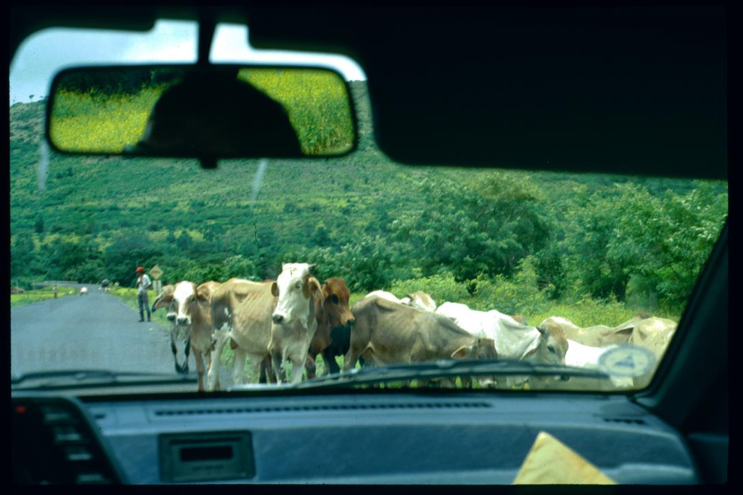 Nicaragua 1992/Kuhherde auf der Strasse/vacas en la carretera/cow herd on the highway/public
