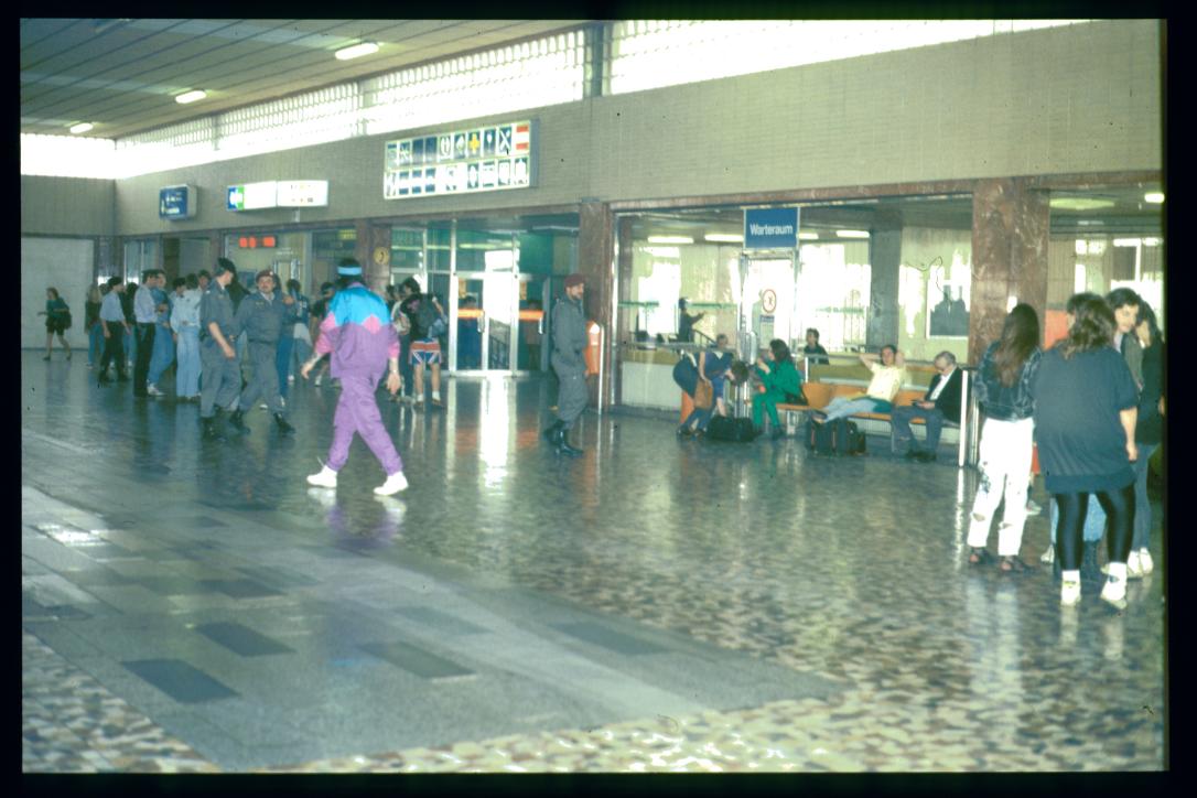 Landschulwoche 1992/Gymnasium Waidhofen/Thaya -> Neusiedl am See/Suedbahnhof verschwommen/Polizeiaufgebot 3